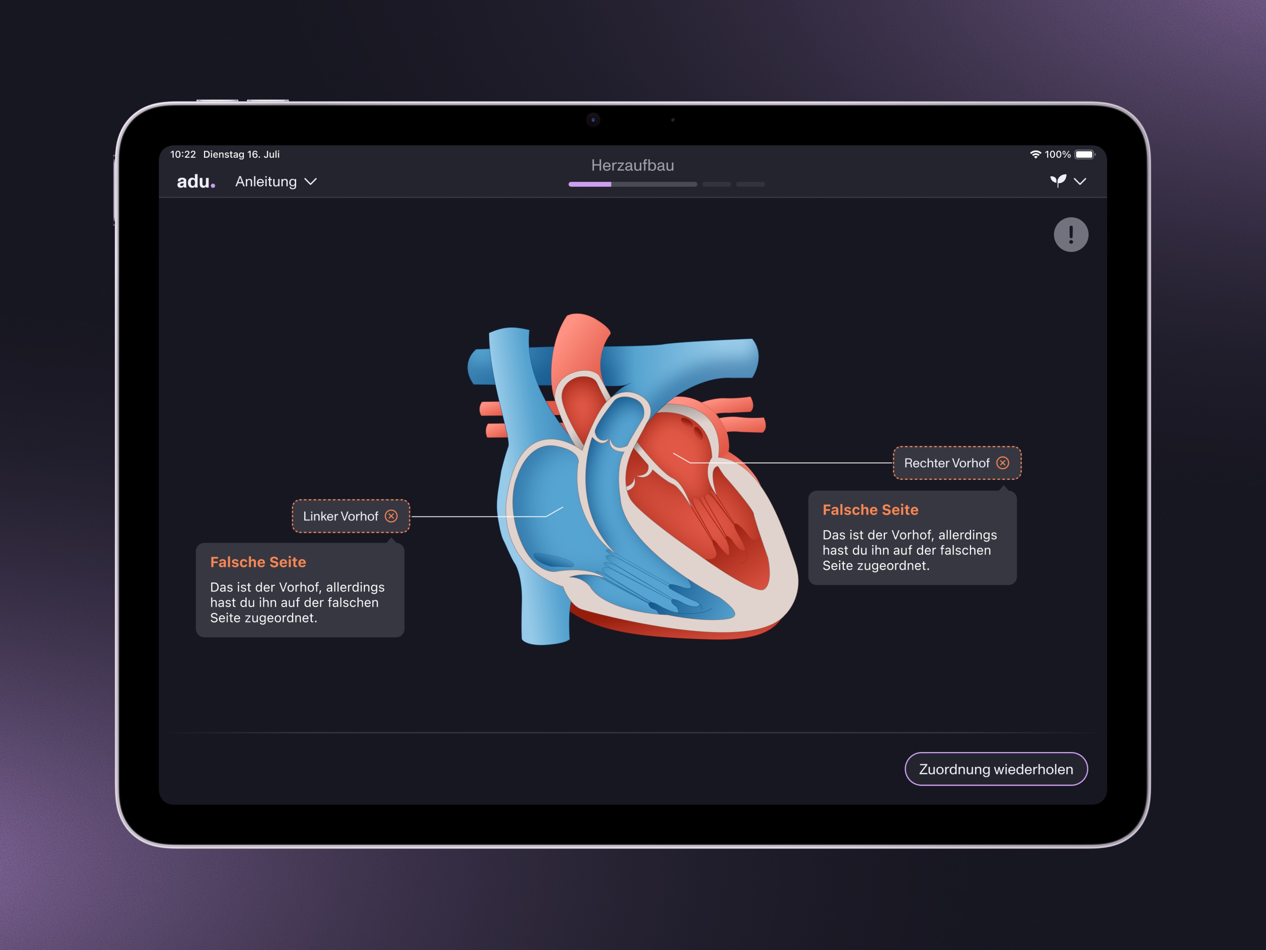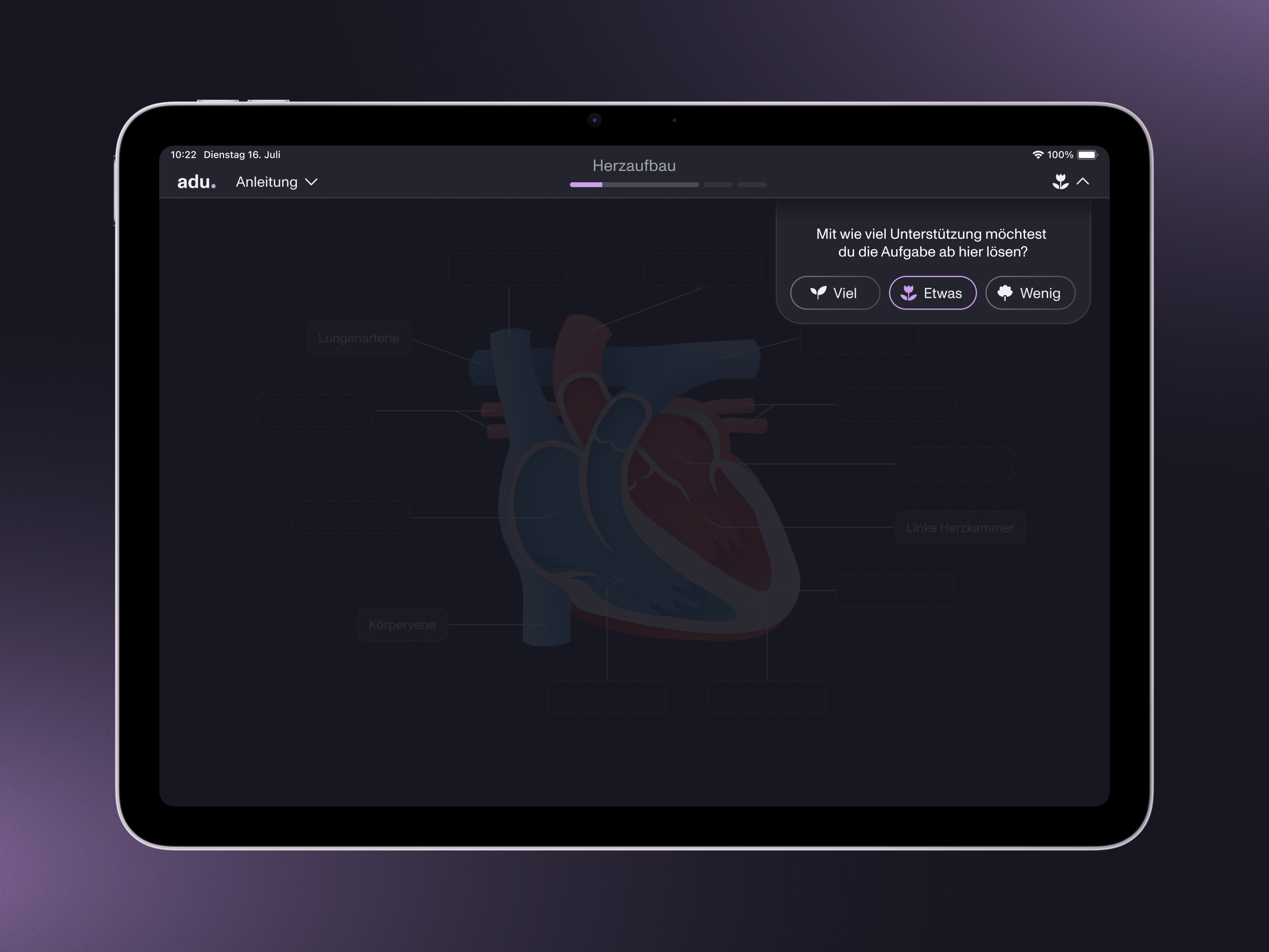 Aus dieser Ausgangslage entstand „adu – adaptive education“: ein digitales Lernsystem mit Übungsaufgaben für den Biologieunterricht der 7. Klasse an Gymnasien.