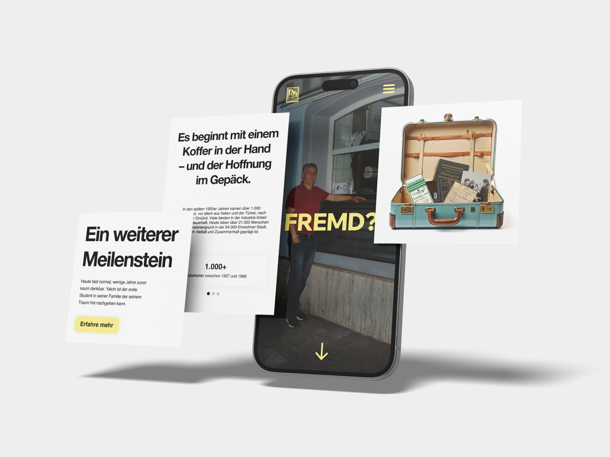 Im Rahmen des Projekts „Unser Gmünd“ haben wir unter dem Titel „FREMD?“ eine Arbeit entwickelt, die persönliche Geschichten mit gesellschaftlichen Entwicklungen verknüpft. Im Mittelpunkt stehen drei Generationen. Sie alle haben ein Bezug zu den Gastarbeitern oder waren selbst welche, die in den 1950er bis