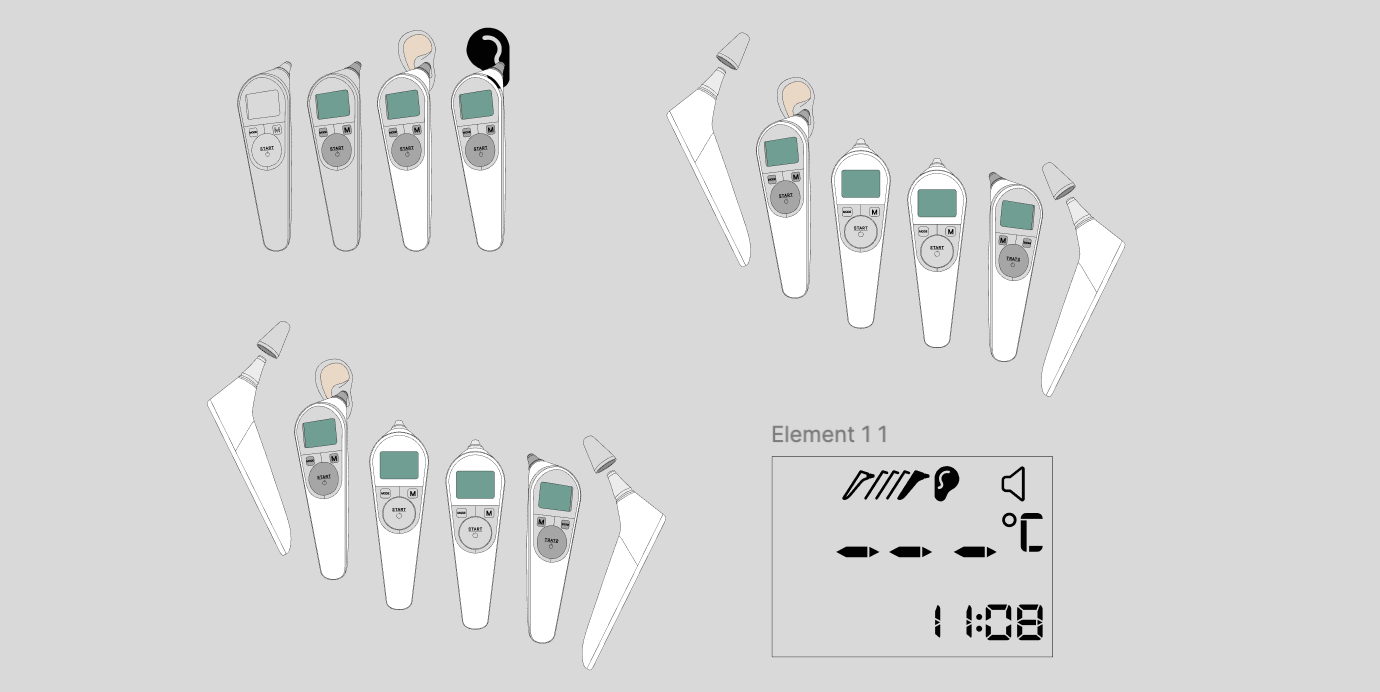 Beim First-Use-Test des microlife IR 200 zeigten sich mehrere UX-Probleme, die zusammengenommen eine intuitive Nutzung nahezu unmöglich machen. Die erste kleine Hürde, das unklare Icon ‘Gerät ins Ohr stecken’ trägt nur zur Verwirrung bei, das Hauptproblem allerdings ist die Rückmeldung ‘good’, die man nicht sehen kann, wenn man an sich selbst die Temperatur misst. Der Ablauf des mehrstufigen Messprozesses wird schlecht kommuniziert, und als Folge zweifelt der User an der Funktionsweise des Geräts oder misst im falschen Modus.
