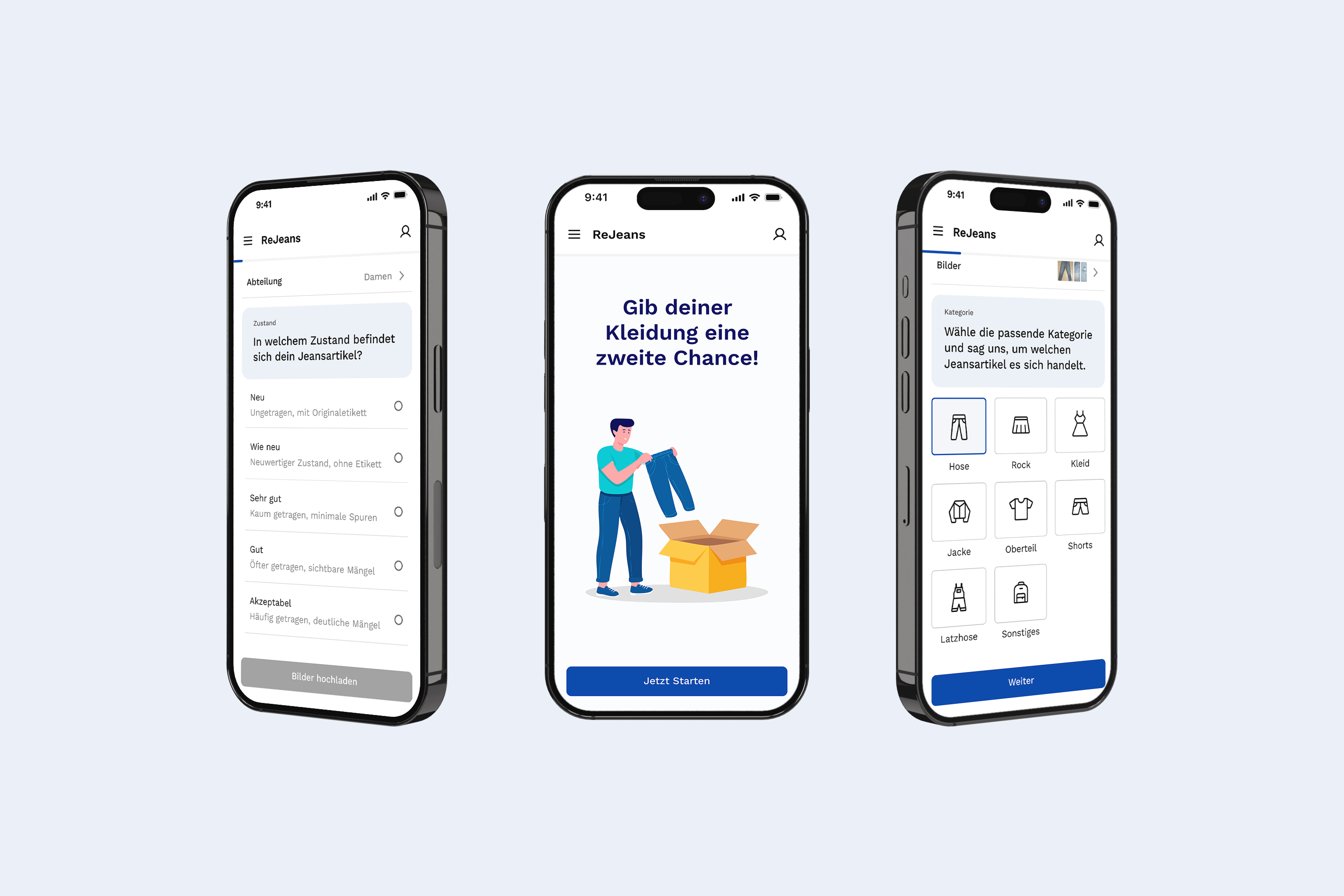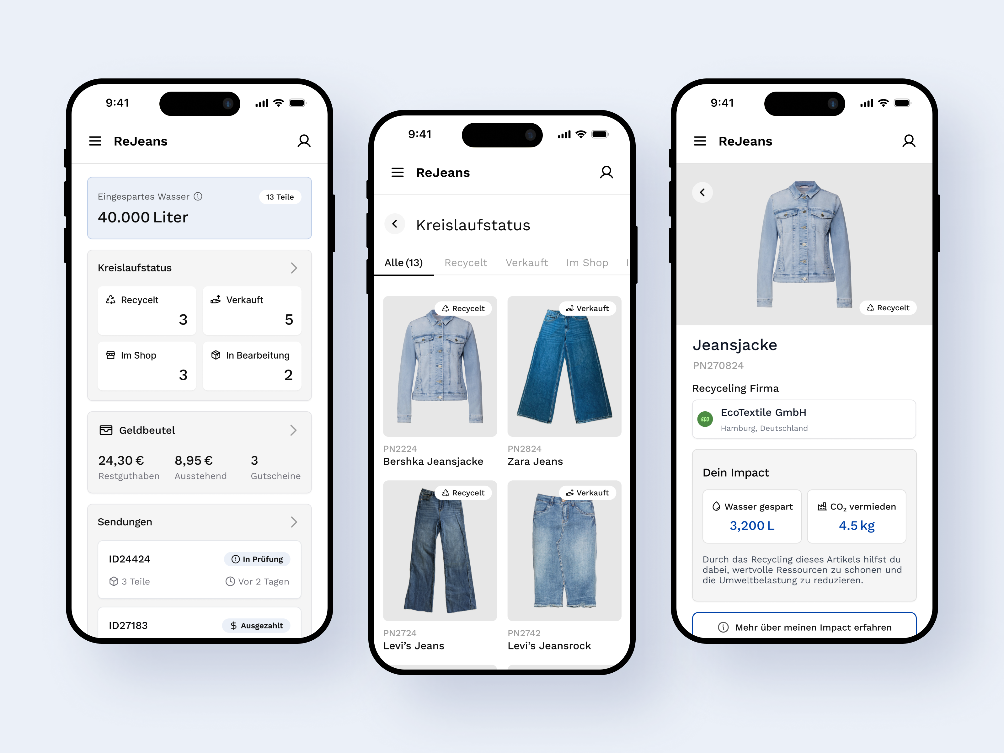 Unsere Anwendung ermöglicht es Nutzern ihre Jeans Artikel einzusenden wenn sie diese nicht mehr benötigen. Die eingesandten Kleidungsstücke werden sorgfältig geprüft und erhalten so eine zweite Chance entweder durch Weiterverkauf oder durch ein Recycling-Verfahren. Besonders wichtig ist dabei die Möglichkeit den gesamten Weg der Jeans transparent nachzuverfolgen. Nutzer können jederzeit sehen wie ihr Kleidungsstück weiterverarbeitet wird ob es wieder verkauft oder recycelt wird und wie es dadurch aktiv zur Förderung der Kreislaufwirtschaft beiträgt. Durch diese Transparenz soll das Bewusstsein für nachhaltigen Konsum gestärkt und ein Beitrag zur Reduzierung von Textilabfällen geleistet werden.