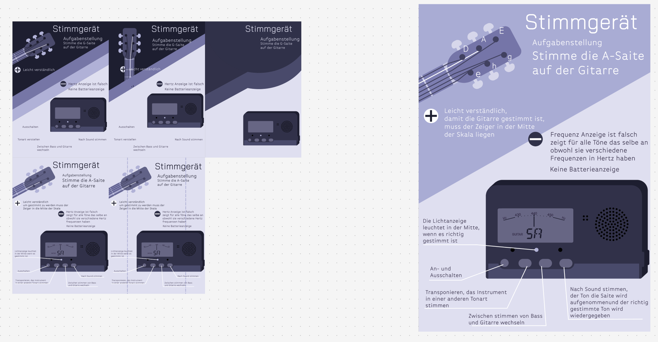 Die Aufgabe war es, mit einem Stimmgerät von Korg die G-Saite auf einer Gitarre zu stimmen. Im Verlauf des User-Testings sollten sich eigentlich ein paar Probleme herauskristallisieren, was allerdings leider nicht der Fall war. Bis auf die Verwirrung des Nutzers warum vor dem G-Ton die Zahl 3 war, was für die 3 Saite der Gitarre steht, verlief das Testing problemlos.